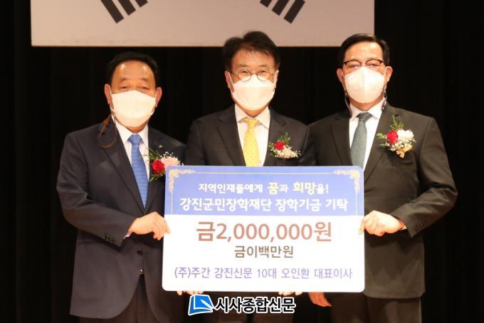 ¿ÀÀÎȯ ´ëÇ¥ÀÌ»ç´Â ¢ß°Áø½Å¹® â°£À§¿ø ¹× Àü Àü¹«À̻縦 ¿ªÀÓÇßÀ¸¸ç 2014³âºÎÅÍ ÃÑ 4ȸ¿¡ °ÉÃÄ Áö±Ý±îÁö 500¸¸ ¿øÀÇ ÀåÇбÝÀ» °Áø±º¹ÎÀåÇÐÀç´Ü¿¡ ±âŹÇß´Ù.