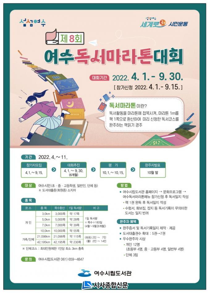 Èñ¸ÁÀÚ´Â ¡®¿©¼öµ¶¼¸¶¶óÅæ´ëȸ ȨÆäÀÌÁö(https://yslib.yeosu.go.kr/marathon/lib/)¡¯¿¡¼ ½ÅûÇÏ¸é µÈ´Ù. ´ëȸ½ÃÀÛ ÈÄ¿¡µµ Âü°¡ ½ÅûÀÌ °¡´ÉÇϸç, Á¾·á 15ÀÏ ÀüÀÎ 9¿ù 15ÀϱîÁö ½ÅûÇÒ ¼ö ÀÖ´Ù.