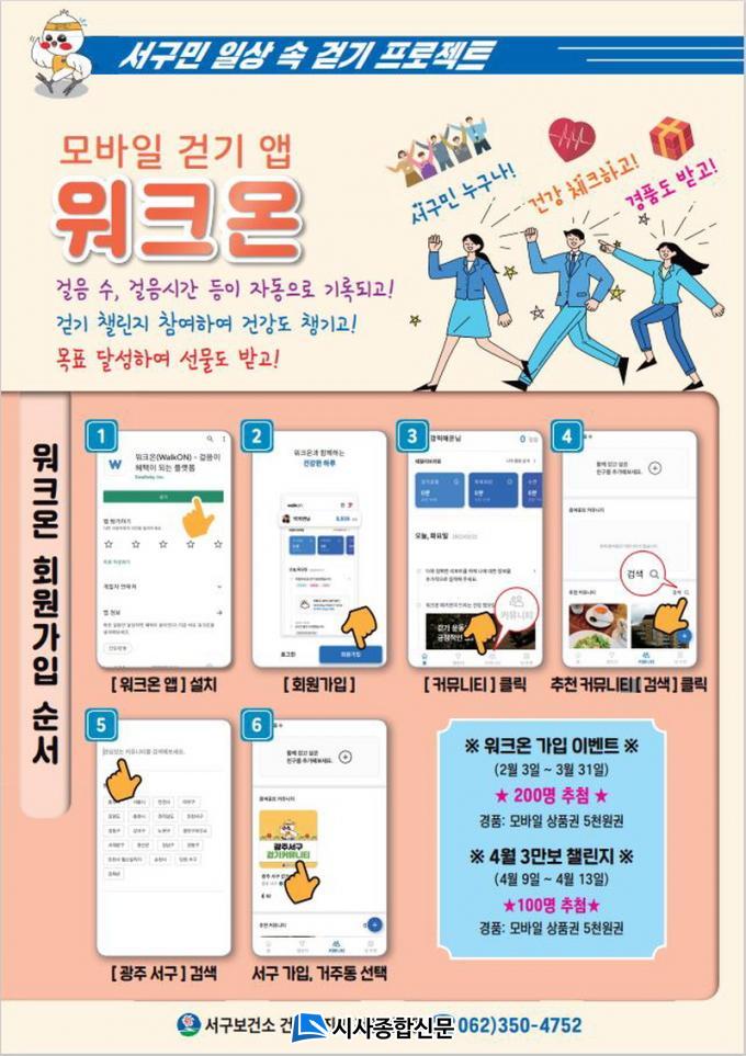 ¿öÅ©¿Â °¡ÀÔ À̺¥Æ®´Â 4¿ùºÎÅÍ 5¿ù ¸»±îÁö ¿öÅ©¿Â ¡®±¤ÁÖ ¼±¸ Ä¿¹Â´ÏƼ¡¯ ½Å±Ô°¡ÀÔÀÚ Áß 200¸íÀ» Ãß÷ÇÒ °èȹÀÌ´Ù. ¶ÇÇÑ 4¿ù ¡®3¸¸º¸ °È±â 縰Áö¡¯´Â 4¿ù 9ÀϺÎÅÍ 13ÀϱîÁö ÃÑ 3¸¸º¸(1ÀÏ 15,000º¸ Á¦ÇÑ)¸¦ ´Þ¼ºÇÑ ±¸¹Î Áß¿¡¼ 100¸íÀ» Ãß÷ÇÏ¿© ¸ð¹ÙÀÏ »óǰ±ÇÀ» ÁõÁ¤ÇÑ´Ù.