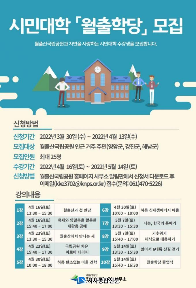 [½Ã»çÁ¾ÇսŹ® = ¿À½ÂÅà ±âÀÚ] ¿ùÃâ»ê±¹¸³°ø¿ø»ç¹«¼Ò(¼ÒÀå ¹®±¤¼±)´Â 2022³â ¿ùÃâ»ê Àα٠Áö¿ªÁÖ¹Î(¿µ¾Ï±º, °Áø±º, ÇØ³²±º)À» ´ë»óÀ¸·Î ¡®±¹¸³°ø¿ø ½Ã¹Î´ëÇС¸¿ùÃâÇд硹1±â¡¯¸ðÁýÇÑ´Ù.