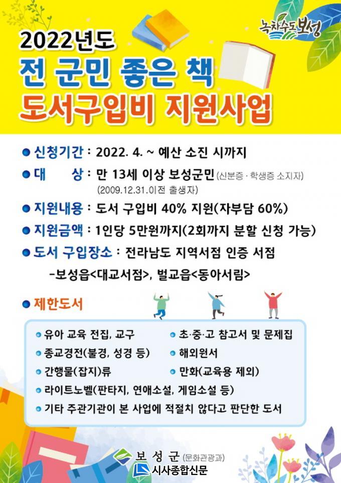 ¡®Àü ±º¹Î ÁÁÀº Ã¥ µµ¼±¸ÀÔºñ Áö¿ø»ç¾÷¡¯Àº µµ¼ ±¸ÀÔ ½Ã ±¸ÀÔ°¡ÀÇ 40%¸¦ Áö¿øÇÏ´Â »ç¾÷ÀÌ´Ù. º¸¼º±º¹Î(Áֹεî·Ï»ó ¸¸ 13¼¼ ÀÌ»ó º¸¼º±º °ÅÁÖÀÚ ¶Ç´Â Áö¿ª ¼ÒÀç Áß¡¤°íµîÇлý)ÀÌ¸é ´©±¸³ª Âü¿©ÇÒ ¼ö ÀÖ´Ù.