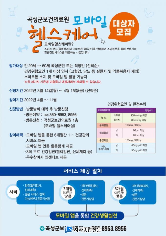 °î¼º±ºÀº 4¿ù 15ÀϱîÁö ´ë»óÀÚ 60¸íÀ» ¸ðÁýÇÑ´Ù. 20~70¼¼ ±º¹ÎÀ̳ª ÁÖ¼ÒÁö¿¡ »ó°ü ¾øÀÌ °î¼º±º¿¡¼ Á÷ÀåÀ» ´Ù´Ï°í ÀÖ´Ù¸é ´©±¸³ª ½ÅûÇÒ ¼ö ÀÖ´Ù. ´Ü ¸ð¹ÙÀÏ·Î ÁøÇàµÇ´Â ¼ºñ½ºÀ̱⠶§¹®¿¡ ¹Ýµå½Ã ½º¸¶Æ®ÆùÀ» ¼ÒÁöÇϰí ÀÖ¾î¾ß ÇÑ´Ù. ½Åû ¹× ¹®ÀÇ´Â °î¼º±º º¸°ÇÀÇ·á¿ø °Ç°ÁõÁøÆÀ(061-360-8953, 8956)À» ÅëÇØ °¡´ÉÇÏ´Ù.
