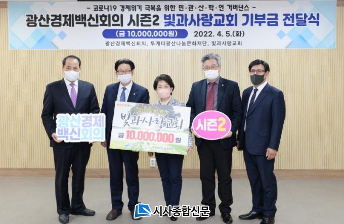 ±¤»ê±¸ ºû°ú»ç¶û±³È¸´Â 5ÀÏ ¿ÀÀü ±¤»ê±¸Ã»¿¡¼ Àü´Þ½ÄÀ» °®°í ±¤»ê°æÁ¦¹é½ÅȸÀÇÀÇ Áö¿ª°æÁ¦ Ȱ¼ºÈ »ç¾÷¿¡ ½á´Þ¶ó¸ç Åõ°Ô´õ±¤»ê ³ª´®¹®ÈÀç´Ü¿¡ 1000¸¸ ¿øÀ» ±âºÎÇß´Ù.