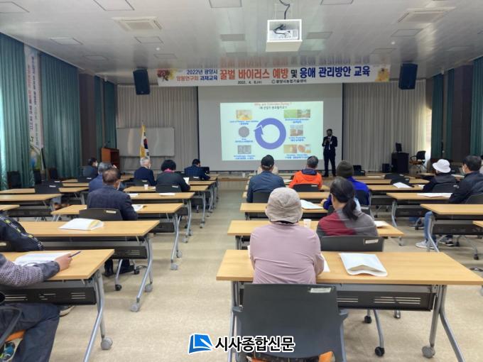 [½Ã»çÁ¾ÇսŹ® = Àå¹Î±Ô ±âÀÚ] ±¤¾ç½Ã´Â Áö³ 4¿ù 6ÀÏ ±¤¾ç½Ã¾çºÀ¿¬±¸È¸¿Í Áö¿ª ³» ¾çºÀ ³ó¾÷ÀÎ 45¸íÀ» ´ë»óÀ¸·Î ¾çºÀ Àü¹®±â¼ú ½Àµæ°ú º´ÇØÃæ ÇÇÇØ¹æÁö¸¦ À§ÇÑ ±â¼ú±³À°À» ³ó¾÷Àα³À°°ü¿¡¼ ½Ç½ÃÇß´Ù.