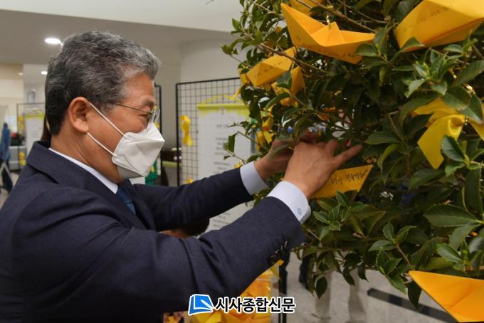 Ã߸ð°üÀÌ ¸¶·ÃµÈ ¼±¸Ã» 1Ãþ ·Îºñ¿¡´Â ´ëÇü Ã߸ð Çö¼ö¸·À» °Ô½ÃÇϰí, ¼¼¿ùÈ£ Èñ»ýÀÚ¿¡ ´ëÇÑ Ã߸ð¸ñ(³ª¹«)À» ¼³Ä¡ÇÏ¿© û»ç¸¦ ¹æ¹®ÇÏ´Â ½Ã¹Î°ú °øÁ÷ÀÚ µîÀÌ ³ë¶õ Á¾À̹è¿Í ¸®º»¿¡ Ã߸ð ¸Þ½ÃÁö¸¦ ÀÛ¼ºÇÏ¿© Á÷Á¢ °É ¼ö ÀÖµµ·Ï Çß´Ù.