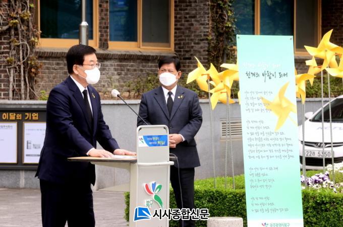 [½Ã»çÁ¾ÇսŹ® = ¿À½ÂÅà ±âÀÚ] ±¤Áֽà ºÏ±¸(±¸Ã»Àå ¹®ÀÎ)´Â 4・16 ¼¼¿ùÈ£ Âü»ç 8Áֱ⸦ ¸Â¾Æ Èñ»ýÀÚ¸¦ Ã߸ðÇÏ°í »ý¸í°ú ÀαÇÀÇ Àǹ̸¦ µÇ»õ±â°íÀÚ ¿À´Â 17ÀϱîÁö Ã߸ð ÁÖ°£À» ¿î¿µÇÑ´Ù.