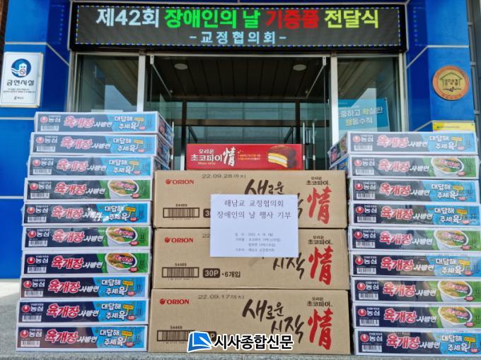 [½Ã»çÁ¾ÇսŹ® = °À±¿À ±âÀÚ] ÇØ³²±³µµ¼Ò(¼ÒÀå ÃÖÁ¾ÀÏ)´Â 2022³â 4¿ù 18ÀÏ Á¦42ȸ Àå¾ÖÀÎÀÇ ³¯À» ¸Â¾Æ ÇØ³²±³µµ¼Ò ±³Á¤ÇùÀÇȸ·ÎºÎÅÍ Àå¾Ö ¼ö¿ëÀÚµéÀ» À§ÇÑ ±âÁõǰÀ» Àü´Þ¹Þ¾Ò½À´Ï´Ù.