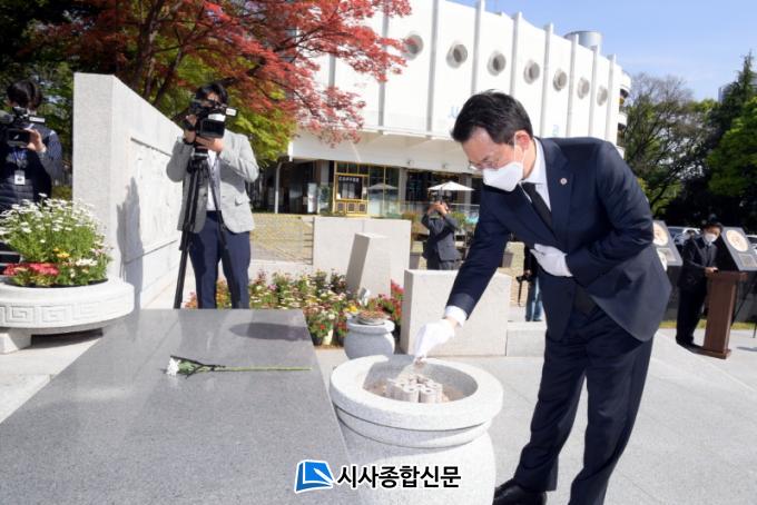 ÇÑÆí, ±â³ä½Ä¿¡ ¾Õ¼ ±¤ÁÖ°ø¿ø ³» 4¡¤19Çõ¸í ±â³äž¿¡¼ ¿¸° 4¡¤19Çõ¸í Èñ»ýÀÚ¸¦ À§ÇÑ Âü¹èÇà»ç¿¡´Â ¹®¿µÈÆ ½ÃÀå ±ÇÇÑ´ëÇà, ±è¿ëÁý ½ÃÀÇȸ ÀÇÀå, ÀÓÁ¾¹è ±¤ÁÖÁö¹æº¸ÈÆÃ»Àå, 4¡¤19°ø¹ý´ÜüÀå µî 30¿© ¸íÀÌ Âü¼®Çß´Ù.
