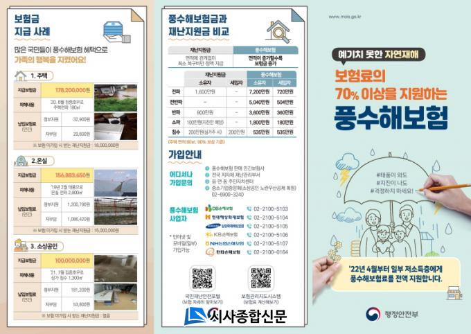Áö¿øÀ² »óÇâ¿¡ µû¶ó ÁÖÅÃ(ÀϹÝ), ¿Â½Ç, »ó°¡‧°øÀå(¼Ò»ó°øÀÎ)Àº º¸Çè·áÀÇ 30%, Àç³Áö¿ø±Ý ¼ö·É ¼¼´ëÀÎ Ãë¾àÁö¿ª ÁÖÅÃÀº º¸Çè·áÀÇ 13%¸¸ º»ÀÎÀÌ ºÎ´ãÇÏ¸é µÈ´Ù. dz¼öÇØº¸ÇèÀº ÁÖÅÃ, ³ó¡¤ÀÓ¾÷¿ë ¿Â½Ç(ºñ´ÒÇϿ콺 Æ÷ÇÔ), ¼Ò»ó°øÀÎÀÌ ¿î¿µÇÏ´Â »ó°¡¿Í °øÀåÀ» ´ë»óÀ¸·Î ÅÂdz, È£¿ì, È«¼ö, °Ç³, dz¶û, ÇØÀÏ, ´ë¼³, ÁöÁøÀÇ 8°³ À¯ÇüÀÇ ÀÚ¿¬Àç³À¸·Î ÇÇÇØ ¹ß»ý ½Ã º¸»óÇØ ÁÖ´Â Á¤Ã¥º¸ÇèÀÌ´Ù.