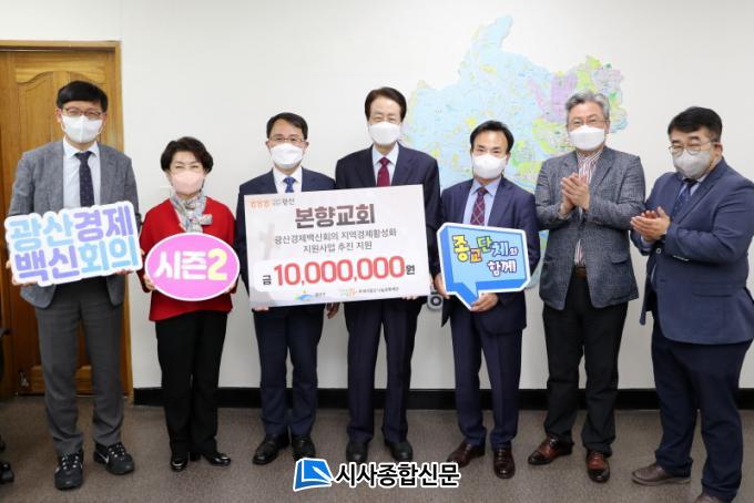 [½Ã»çÁ¾ÇսŹ® = ¿À½ÂÅà ±âÀÚ] ±¤ÁÖ ±¤»ê±¸ º»Çⱳȸ°¡ 27ÀÏ ±¸Ã»¿¡¼ Àü´Þ½ÄÀ» °®°í °æÁ¦È°¼ºÈ¸¦ À§ÇÑ ¼º±Ý 1000¸¸ ¿øÀ» Åõ°Ô´õ±¤»ê ³ª´®¹®ÈÀç´Ü¿¡ ±âŹÇß´Ù.