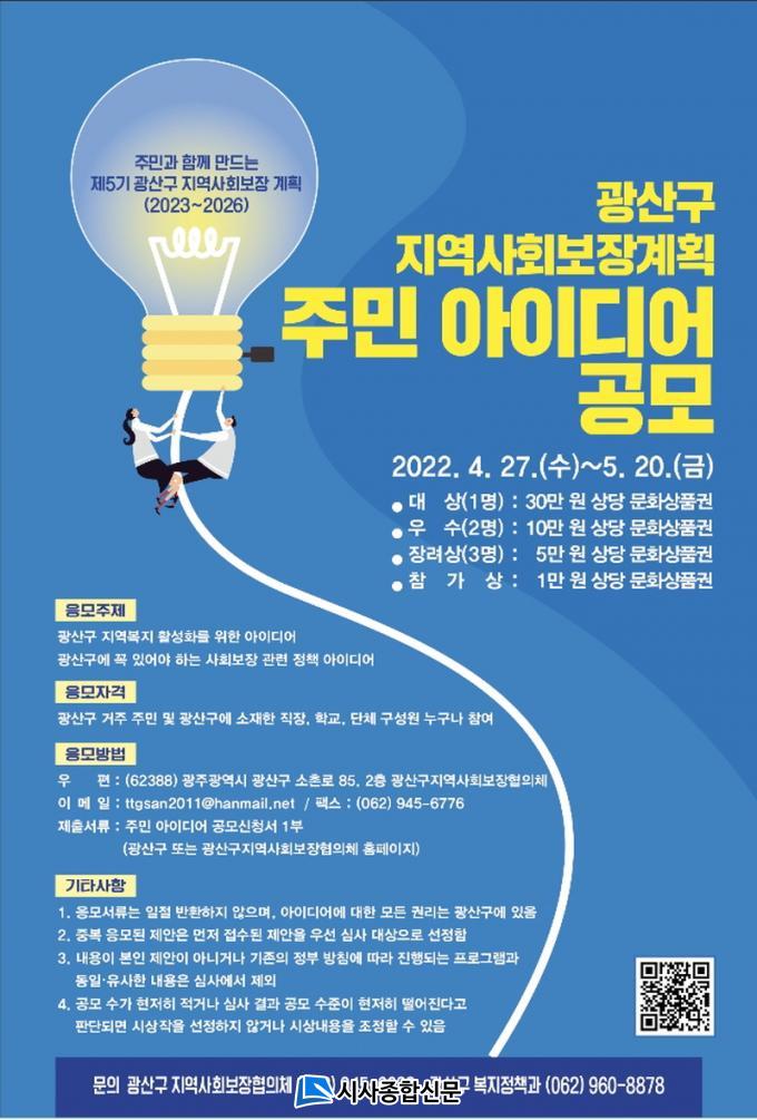 [½Ã»çÁ¾ÇսŹ® = ¿À½ÂÅà ±âÀÚ] ±¤Áֽà ±¤»ê±¸´Â Á¦5±â(2023~2026) Áö¿ª»çȸº¸Àå°èȹ ¼ö¸³¿¡ ÁֹΠÀǻ縦 ¹Ý¿µÇϱâ À§ÇØ ÁֹΠÁ¤Ã¥ ¾ÆÀ̵ð¾î¸¦ °ø¸ðÇÑ´Ù°í ¹àÇû´Ù. À̹ø °ø¸ð´Â ±¤»ê±¸ Áö¿ªº¹Áö Ȱ¼ºÈ¸¦ À§ÇÑ ¾ÆÀ̵ð¾î, ±¤»ê±¸¿¡ ²À ÀÖ¾î¾ß ÇÏ´Â »çȸº¸Àå °ü·Ã Á¤Ã¥ ¾ÆÀ̵ð¾î¸¦ ´ë»óÀ¸·Î ÇÑ´Ù.