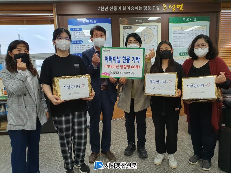 Á¶¼ºÁßÇб³ Çлý¡¤Çкθðȸ´Â 5¿ù °¡Á¤ÀÇ´ÞÀ» ¸ÂÀÌÇÏ¿© ¾î¸¥µé²² È¿¸¦ ½ÇõÇÏ°í ºÀ»ç¡¤³ª´®À» ½ÇõÇϱâ À§ÇØ Ä«³×ÀÌ¼Ç ¹æÇâÁ¦¸¦ Á¦ÀÛÇß´Ù. ±âŹµÈ ¹æÇâÁ¦´Â °ü³» µ¶°Å ³ëÀο¡°Ô Àü´ÞµÉ ¿¹Á¤ÀÌ´Ù. Çкθð ¹× ±³Á÷¿øµéÀº ¹Ù»Û ÀÏÁ¤°¡¿îµ¥ ³ó¹ø±â¸¦ ÇÇÇØ ¹æ°ú ÈÄ µû·Î ¸ð¿© Ä«³×ÀÌ¼Ç ¹æÇâÁ¦¸¦ ¸¸µå´Â µ¥ Âü¿©ÇÏ¿´°í, ÇлýµéÀº ±³°ú ¿¬°è·Î ÃßÁøµÆ´Ù.