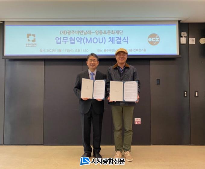 À̹ø Çù¾àÀº ¡®¹®Èµµ½Ã¡¯ ¿µµîÆ÷¿Í ¡®¾Æ½Ã¾Æ¹®ÈÁ߽ɵµ½Ã¡¯·Î ³ª¾Æ°¡°í ÀÖ´Â ±¤ÁÖÀÇ °¢ Áö¿ªÀ» ´ëÇ¥ÇÏ´Â ¹®È¿¹¼ú±â°üÀÇ »óÈ£ Áö¿ø¡¤Çù·ÂÀ» ¹ÙÅÁÀ¸·Î ÇÑ´Ù. ±¤ÁÖºñ¿£³¯·¹Àç´Ü Á¦¹®Çå 3Ãþ ÄÁÆÛ·±½ºÈ¦¿¡¼ ÁøÇàµÈ Çù¾à½Ä¿¡´Â ¿µµîÆ÷¹®ÈÀç´Ü °¿øÀç ´ëÇ¥ÀÌ»ç¿Í ±¤ÁÖºñ¿£³¯·¹Àç´Ü ¹Ú¾ç¿ì ´ëÇ¥À̻簡 Âü¼®ÇØ Çù¾àÀ» ¸Î¾ú´Ù.