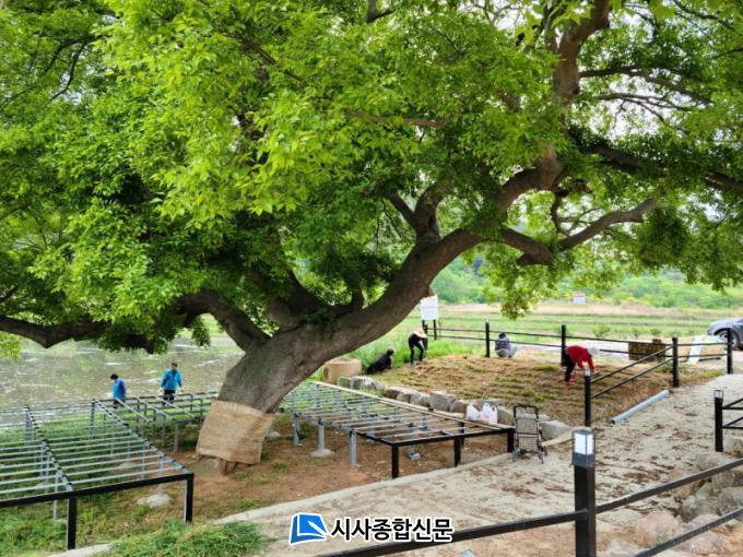 ¹é°î¸¶À» ´ç»ê³ª¹«´Â ¸¶À» ÁֹεéÀÌ ¸ð¿© À½½ÄÀ» ³ª´©°í ¸¶À»ÀÇ ´ë¼Ò»ç¸¦ »óÀÇÇÏ´ø »ç¶û¹æ ¿ªÇÒÀ» ÇÏ´ø °÷À¸·Î ÇöÀç´Â ¸¶À»ÀÇ ¼öÈ£½Å ¿ªÇÒÀ» Çϰí ÀÖ´Ù. ÁֹεéÀº ¼öÂ÷·Ê ¸¶À»È¸ÀǸ¦ °ÅÃÄ À̸¦ º¸Á¸Çϱâ À§ÇÑ ´Ù¾çÇÑ ¹æ¹ýÀ» °í¹ÎÇÑ ³¡¿¡ Áö³ÇØ 1³âÂ÷ »ç¾÷À¸·Î ¿ø¼®°ú ȲÅ並 ¸Å¸³, ÁÖº¯ ¶¥À» °í¸£°Ô ÇÏ´Â ±â¹Ý ÀÛ¾÷À» ÁøÇàÇß´Ù.