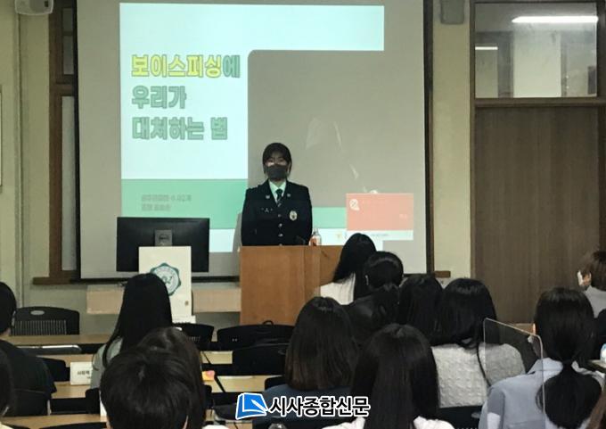 À̹ø Ư°Àº °æÂûÇàÁ¤Çаú 1Çгâ, 2Çгâ ÀçÇлý 60¸íÀ» ´ë»óÀ¸·Î ¡®º¸À̽ºÇÇ½Ì ¿¹¹æ ±³À°¡¯À̶ó´Â ÁÖÁ¦·Î ÁøÇàµÆ´Ù. Ư° °»ç·Î´Â ±¤ÁÖ°æÂûû ¼ö»ç°ú ¼ÛÈ¿¼ø °æÀåÀ» ÃÊÃ»ÇØ º¸À̽ºÇÇ½Ì À¯Çü°ú ½ÇÁ¦ ÇÇÇØ »ç·Ê µî ÇÇÇØÀÚ ÇöȲÀ» ÁßÁ¡ÀûÀ¸·Î °ÀÇÇßÀ¸¸ç º¸À̽ºÇÇ½Ì ¿¹¹æ¹ý¿¡ ´ëÇÑ ´ëó¹æ¾Èµµ Á¦°øÇß´Ù.