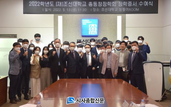Áö³ 13ÀÏ ¿ÀÀü 11½Ã 30ºÐ Á¶¼±´ëÇб³ º»°ü 2Ãþ ûÃâ¾î·ë(ôìõóåÚROOM)¿¡¼ ÁøÇàµÈ ÀåÇÐ±Ý ¼ö¿©½ÄÀº Á¶¼±´ëÇб³Ãѵ¿Ã¢È¸¿Í (Àç)Á¶¼±´ëÇб³Ãѵ¿Ã¢ÀåÇÐȸ°¡ ÈĹèµéÀÇ ²ÞÀ» ÀÀ¿øÇϰí Áö¿øÇϱâ À§ÇØ ¸¶·ÃµÈ ÀåÇÐ±Ý ¼ö¿©½ÄÀ¸·Î 21³â °£ Áö±ÞÇϰí ÀÖ´Ù.