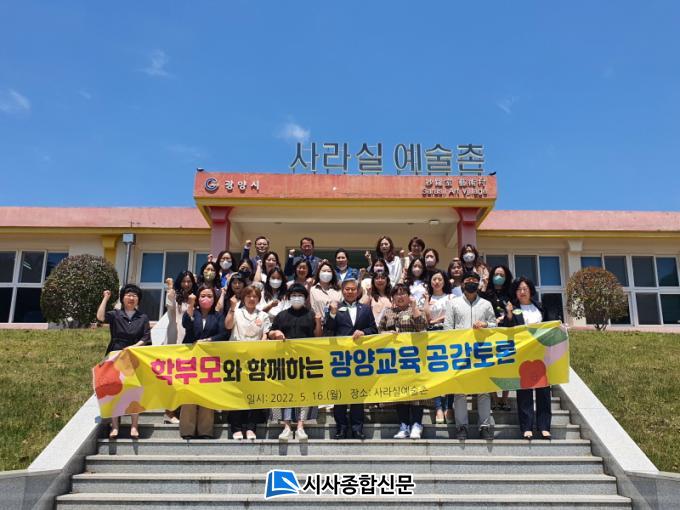 À̹ø ¿¬Âùȸ´Â ±¤¾çÇкθð¿¬ÇÕȸ ȸ¿øµé¿¡°Ô 2022³â ±¤¾ç±³À° ÁÖ¿ä ¾÷¹«¸¦ ¾È³»Çϰí, ±³À°Àå °£´ãȸ¸¦ ½Ç½ÃÇÏ¿© ±¤¾ç±³À°¿¡ ´ëÇÑ ÇкθðÀÇ ÀÌÇØ¸¦ µ½°í ±³À°°øµ¿Ã¼¿Í ÇÔ²²ÇÏ´Â ±³À° ½ÇÇöÀ» µµ¸ð ÇÏ¿´´Ù. ¾Æ¿ï·¯ ±¤¾çÀÇ Á߽ɸ¶À»Çб³ÀÎ »ç¶ó½Ç¿¹¼úÃÌ Á¶ÁÖÇö ÃÌÀåÀÌ ¸¶À»Çб³ÀÇ ÃëÁö, ±¤¾ç¸¶À»Çб³ ÇöȲ, ¸¶À»°ú Çб³ ¿¬°è ±³À°°úÁ¤¿î¿µ¿¡ ´ëÇÑ ³»¿ëÀ» ¾È³»ÇÏ¿© ¸¶À»°ú ÇÔ²² ÇÏ´Â ±³À°¿¡ ´ëÇÑ °ø°¨´ë¸¦ Çü¼ºÇß´Ù.