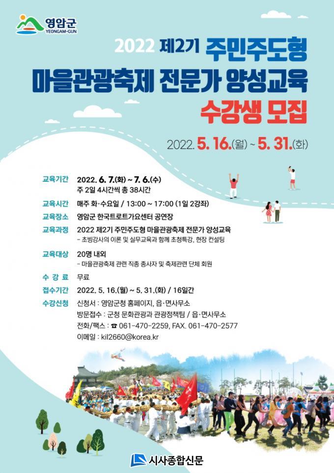 ¶ÇÇÑ, ÃàÁ¦Àü¹®°¡ ¹× ³óÃ̰ü·ÃÇаú¡¤°ü±¤°ü·ÃÇаú ±³¼ö, Áö¿ª¹®È Àü¹®°¡µéÀÌ Àü´ÞÇÏ´Â ¸¶À» °ü±¤ ÃàÁ¦ÀÇ ±âº»ÀûÀÎ ÀÌÇØ¿Í ¿î¿µ»ç·Ê ¹× ºñ±³ºÐ¼® µîÀ» ¹ÙÅÁÀ¸·Î ÀÌ·Ð ¹× ½Ç¹«±³À°, ÇöÀå ±³À°, Åä·Ð ±³À°À¸·Î ÁøÇàÇÑ´Ù. ¼ö°»ý ¸ðÁýÀº °ü³» ¸¶À» °ü±¤ ÃàÁ¦¿¡ °ü½ÉÀÌ ÀÖ´Â ÁֹεéÀ» ´ë»óÀ¸·Î ±³À° ¼ö°·á´Â Àü¾× ¹«·á·Î ´ÙÀ½ ´Þ 6¿ù 7ÀϺÎÅÍ ¿î¿µµÇ¸ç ½ÅûÀº ¿À´Â 5¿ù 31ÀϱîÁö ¿µ¾Ï±º ¹®È°ü±¤°ú ¶Ç´Â À¾¡¤¸é»ç¹«¼Ò·Î ¹®ÀÇ¡¤Á¢¼öÇÏ¸é µÈ´Ù.