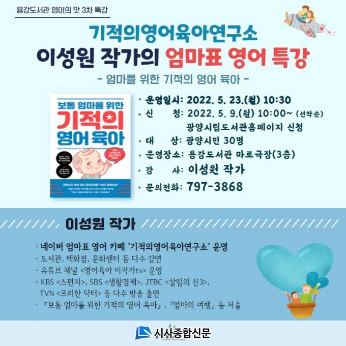 ½Ã´Â ¿À´Â 23ÀÏ ¿ÀÀü 10½Ã 30ºÐ¿¡ ¾ö¸¶Ç¥ ¿µ¾î Ä«Æä ¡®±âÀûÀÇ¿µ¾îÀ°¾Æ¿¬±¸¼Ò¡¯¸¦ ¿î¿µ ÁßÀÎ ¿µ¾î±³À° Àü¹®°¡ À̼º¿ø ÀÛ°¡¸¦ ÃÊÃ»ÇØ ¡®¾ö¸¶¸¦ À§ÇÑ ±âÀûÀÇ ¿µ¾î À°¾Æ¡¯¶ó´Â ÁÖÁ¦·Î °¿¬À» ÁøÇàÇÑ´Ù.