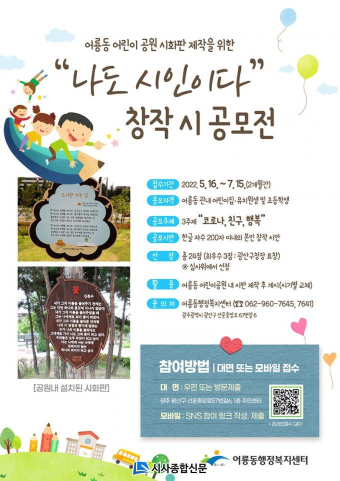°ø¸ð ±â°£Àº 7¿ù15ÀϱîÁö·Î ¾î·æµ¿ ¼ÒÀçÀÇ ¾î¸°ÀÌÁý, À¯Ä¡¿ø, ÃʵîÇб³¿¡ ´Ù´Ï´Â ¾î¸°ÀÌ¸é ´©±¸³ª ÀÚÀ¯·Ó°Ô Âü¿©ÇÒ ¼ö ÀÖ´Ù. Âü¿© ¹æ¹ýÀº ¾î·æµ¿ ´©¸®Áý¿¡ °Ô½ÃµÈ ÀÀ¸ð½Åû¼¸¦ ÀÛ¼ºÇÑ ÈÄ ¿ìÆí ¶Ç´Â ¹æ¹® Á¦ÃâÇϰųª ¿Â¶óÀÎ ¸µÅ©(https://naver.me/xxpVmMB8)¿¡ ÀÖ´Â ½Åû¼¸¦ ÀÛ¼ºÇØ Á¦ÃâÇÏ¸é µÈ´Ù.