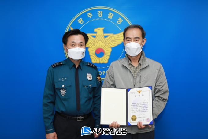 [½Ã»çÁ¾ÇսŹ® = ¿À½ÂÅà ±âÀÚ] ±¤ÁÖ±¤¿ª½Ã°æÂûû(ûÀå ±èÁØÃ¶)Àº 20ÀÏ Ã»Àå½Ç¿¡¼ ¼Õ´ÔÀÌ µÎ°í³»¸° ´Ù¾×ÀÇ ±ÝǰÀÌ µé¾îÀÖ´Â Áö°©À» ¹ß°ßÇØ µ¹·ÁÁØ Åýñâ»ç(±è¡Û¡Û, 67¼¼)¿¡°Ô °¨»çÀåÀ» ¼ö¿©ÇÏ¿´´Ù.