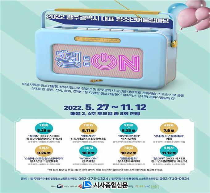 2022 ±¤ÁÖ±¤¿ª½Ã ´ëÇ¥ û¼Ò³â¾î¿ï¸²¸¶´ç ¡°Ã»:ON¡±Àº ¿©¼º°¡Á·ºÎ û¼Ò³âȰµ¿ Á¤Ã¥»ç¾÷À¸·Î ¹®È¿¹¼ú¡¤½ºÆ÷Ã÷¡¤Áø·Î µî ´Ù¾çÇÑ Ã¼Ç衤°ø¿¬¸¶´ç°ú û¼Ò³â°æ¿¬´ëȸ µîÀÌ ÆîÃÄÁö´Â »ó½ÃÀû ¹®È¾î¿ï¸²ÀÇ ÀåÀÌ´Ù.