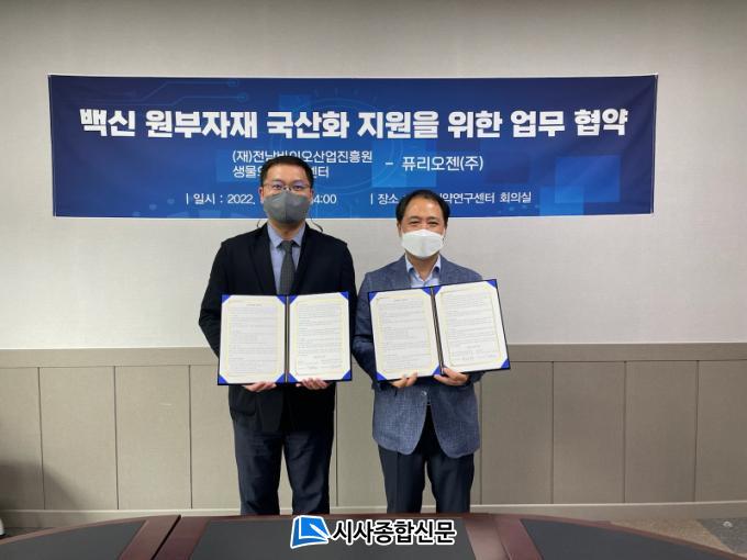 Àü³²¹ÙÀÌ¿À»ê¾÷ÁøÈï¿ø »ý¹°ÀǾ࿬±¸¼¾ÅÍ(¼¾ÅÍÀå °û¿øÀç)´Â 19ÀÏ Ç»¸®¿ÀÁ¨(ÁÖ)°ú ¹é½Å ¿øºÎÀÚÀç ±¹»êÈ ¾÷¹«Çù¾àÀ» Çß´Ù°í ¹àÇû´Ù.