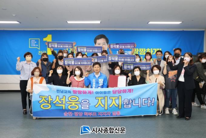 [½Ã»çÁ¾ÇսŹ® = ¿À½ÂÅà ±âÀÚ] ±¤¾ç¡¤¼øÃµÁö¿ª ÇкθðµéÀÌ Àå¼®¿õ Àü³²±³À°°¨ È常¦ ÁöÁöÇÏ°í ³ª¼¹´Ù. 21ÀÏ ±¤¾ç¡¤¼øÃµÁö¿ª ÇкθðµéÀº Àå¼®¿õ ¼±°Å»ç¹«¼Ò¿¡¼ ÁöÁö¼±¾ð½ÄÀ» ¿°í ¡°Çкθ𸦠±³À°ÀÇ ÁÖüÀÌÀÚ µ¿¹ÝÀÚ·Î ¼¼¿öÁØ Àå¼®¿õ È常¦ ÁöÁöÇÑ´Ù¡±°í ¹àÇû´Ù.