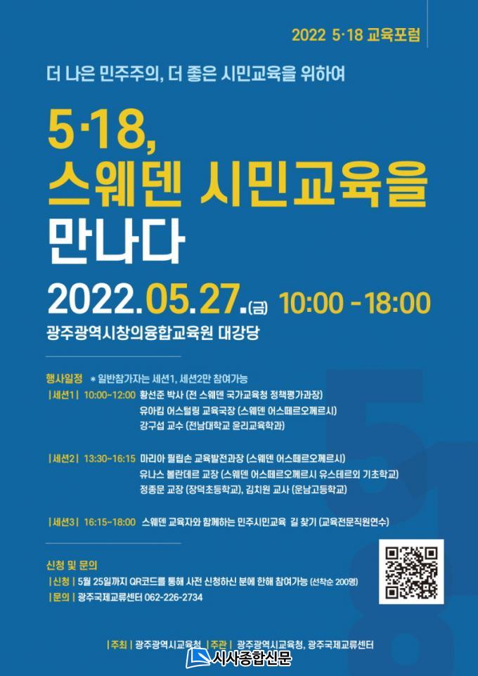 [½Ã»çÁ¾ÇսŹ® = ¿À½ÂÅà ±âÀÚ] ±¤Áֽñ³À°Ã»ÀÌ 5‧18¹ÎÁÖȿ 42ÁÖ³âÀ» ±â³äÇØ ¡®5‧18, ½º¿þµ§ ½Ã¹Î±³À°À» ¸¸³ª´Ù: ´õ ³ªÀº ¹ÎÁÖÁÖÀÇ, ´õ ÁÁÀº ½Ã¹Î±³À°À» À§ÇÏ¿©¡¯¸¦ ÁÖÁ¦·Î ¿À´Â 27ÀÏ ±¤ÁÖâÀÇÀ¶ÇÕ±³À°¿ø¿¡¼ ¡¯2022 5‧18±³À°Æ÷·³¡¯À» °³ÃÖÇÑ´Ù.