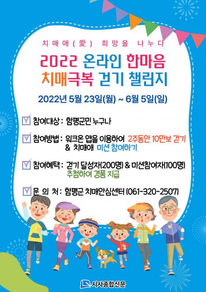 À̹ø Çà»ç´Â °È±â ¿îµ¿À» ÅëÇØ Äڷγª19 Àå±âÈ·Î ÀÎÇÑ ¿ì¿ï°¨À» ÇØ¼ÒÇϰí Ä¡¸Å¿¡ ´ëÇÑ ÀνÄÀ» °³¼±Çϱâ À§ÇØ ¸¶·ÃµÆ´Ù. ÇÔÆò ±º¹Î ´©±¸³ª Âü¿© °¡´ÉÇϸç, Çà»ç ±â°£ÀÎ 2ÁÖ µ¿¾È ÀÚÀ²ÀûÀ¸·Î 10¸¸ º¸¸¦ ´Þ¼ºÇÏ¸é µÈ´Ù.