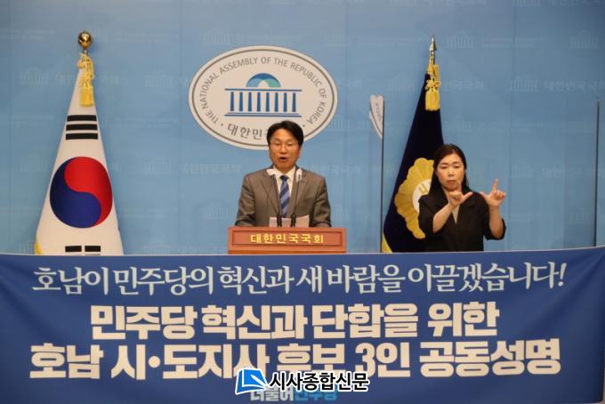 | ´õºÒ¾î¹ÎÁÖ´ç °±âÁ¤ ±¤ÁÖ±¤¿ª½ÃÀå Èĺ¸, ±è¿µ·Ï Àü¶ó³²µµÁö»ç Èĺ¸, ±è°ü¿µ Àü¶óºÏµµÁö»ç È帴 26ÀÏ ¿ÀÀü ±¹È¸ ¼ÒÅë°ü¿¡¼ ±âÀÚȸ°ßÀ» ¿°í ¡®¹ÎÁÖ´ç Çõ½Å°ú ´ÜÇÕÀ» À§ÇÑ °øµ¿¼º¸í¡¯À» ¹ßÇ¥Çß´Ù. |