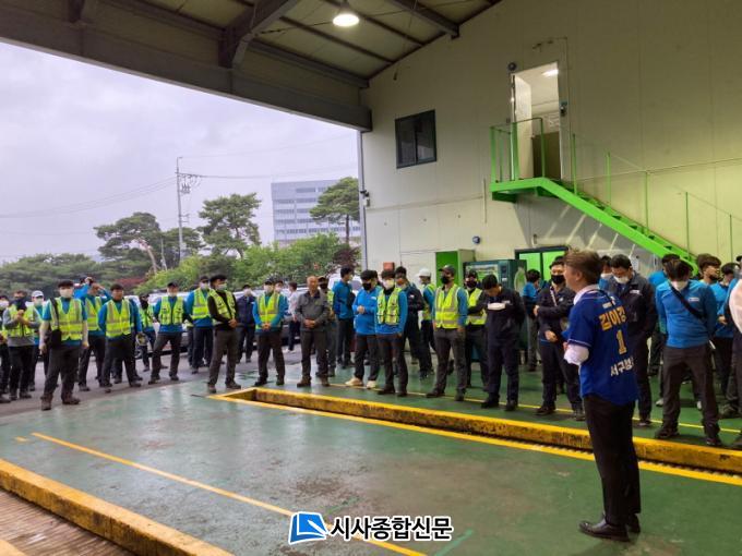 ±èÀ̰ È帴 ȯ°æ°ü¸®¿øµéÀ» ¸¸³ª ÀÏÀÏÀÌ Àλ縦 ³ª´« ÈÄ ¡°°ø°øÀ» À§ÇØ ¸ÅÀϰ°ÀÌ »õº®À» ¿¾îÁÖ°í ±ú²ýÇÑ µµ½Ã¸¦ À§ÇØ ¼ö°íÇØÁּż ³Ê¹« °¨»çµå¸°´Ù¡±°í ¸»Çß´Ù.