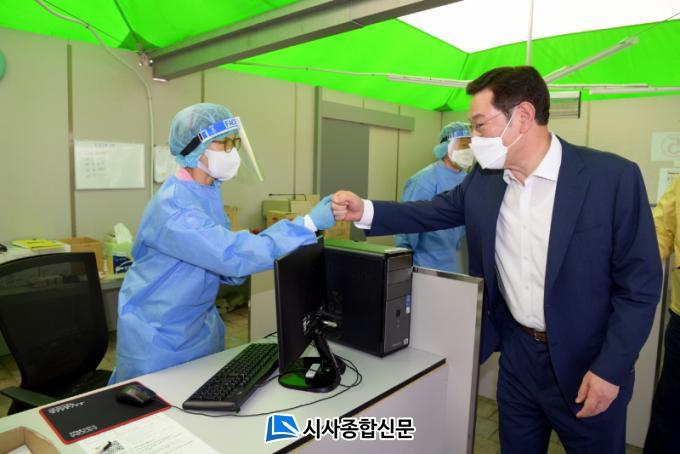 ±¤Áֽð¡ Äڷγª È®»ê¼¼·Î Ä¡¹ÐÇÑ ¹æ¿ª ´ëÀÀÀÌ ÇÊ¿äÇÏ´Ù°í ÆÇ´ÜÇØ Áö³ 2020³â 12¿ù27ÀÏ ¼³Ä¡¡¤¿î¿µ¿¡ µé¾î°£Áö 521ÀÏ ¸¸ÀÌ´Ù. À̿뼷 ½ÃÀåÀº 31ÀÏ ½Ãû ¾ß¿ÜÀ½¾Ç´ç Àӽü±º°°Ë»ç¼Ò¸¦ µÑ·¯º¸°í ÀÇ·áÁø, ÀÚ¿øºÀ»çÀÚµéÀÇ ³ë°í¸¦ °Ý·ÁÇß´Ù.
