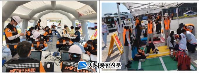 ƯÈ÷, À̹ø ÈÆ·Ã°£¿¡´Â ºÒ¾ÈÁ¤ÇÑ ±¸Á¶¹°¿¡ ÀÎÀ§ÀûÀ¸·Î ¸ñÀç, Àåºñ µîÀ» ÀÌ¿ëÇÏ¿© °íÁ¤ ¹× ÁöÁöÇÔÀ¸·Î½á ±¸Á¶´ë¿øÀÌ ¾ÈÀüÀ» À¯ÁöÇÏ¸é¼ ¿øÈ°ÇÑ ±¸Á¶È°µ¿À» ÇÒ ¼ö ÀÖµµ·Ï ÇÏ´Â ±¸Á¶¹° ¾ÈÁ¤È ±â¹ý Áß ÇϳªÀÎ ¡®ÀÌÁß TÀÚÇü ÁöÁÖ¡¯¸¦ ¼³Ä¡Çϰí, ±¹Á¦Å½»ö±¸Á¶ ÀÚ¹®´Ü(INSARAG)¿¡¼ »ç¿ëÇϴ ǥ½Äü°è¸¦ Ȱ¿ëÇÏ¿© ³»¡¤¿ÜºÎ ±¸¿ªÀ» ±¸ºÐÇÏ°í ±¸Á¶´ë»óÀÚ À§Ä¡¸¦ Ç¥½ÄÇÏ´Â µî ½ÇÁúÀûÀÎ ÈÆ·ÃÀ» ½Ç½ÃÇÏ¿© ´õ¿í Àǹ̰¡ ÄÇ´Ù.