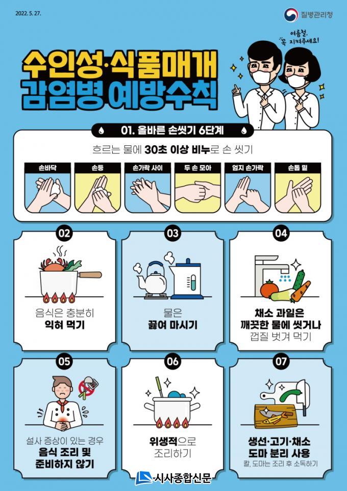º¸°ÇÀÇ·á¿ø °ü°èÀÚ´Â ¡°¿©¸§Ã¶¿¡´Â ¼öÀμº¡¤½Äǰ¸Å°³ °¨¿°º´ÀÌ ¹ß»ýÇÒ À§ÇèÀÌ ¸¹Áö¸¸ Á¶±Ý¸¸ ÁÖÀÇÇϸé ÃæºÐÈ÷ ¿¹¹æÇÒ ¼ö ÀÖ´Ù¡±¸ç ¡°ÀÚÁÖ ¼ÕÀ» ¾Ä´Â µî °³ÀÎÀ§»ýÀ» öÀúÈ÷ ÇÏ°í ¾ÈÀüÇÑ ¹°°ú À½½ÄÀ» ¼·ÃëÇØ¾ßÇÏ¸ç ½Äǰ ¼·Ãë ÈÄ ¿ÀÇÑ, ¹ß¿ Áõ»óÀÌ ³ªÅ¸³ª¸é Áöü ¾øÀÌ Àü¹® ÀÇ·á±â°üÀ» ¹æ¹®ÇØ Ä¡·á¹Þ¾Æ¾ß ÇÑ´Ù¡±°í ´çºÎÇß´Ù.