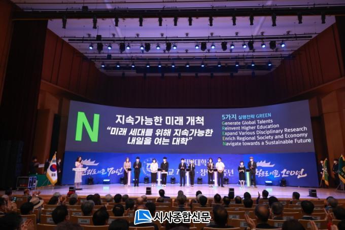 Á¤¼ºÅà ÃÑÀåÀº À̳¯ ±â³ä»ç¿¡¼ ¡°°í³°ú ¿µ±¤ÀÇ 70³â ¿ªÁ¤À» °É¾î ¿Â Àü³²´ëÇб³°¡ ÀÚ¶û½º·´°í, Àü³²´ë °¡Á· ¸ðµÎ¿¡°Ô °¨»ç¿Í ÃàÇϸ¦ µå¸°´Ù.¡±¸ç ¡°Àü³²´ëÇб³´Â Áö³ 70³â µ¿¾È Àü ¼¼°è¿Í Áö¿ª»çȸ °÷°÷¿¡ ±í°í ³ÐÀº »Ñ¸®¸¦ ³»·È±â¿¡, ¾ÕÀ¸·Î ¾î¶°ÇÑ À§±â¿Í ¾î·Á¿ò ¼Ó¿¡¼µµ ´õ ¾Æ¸§´Ù¿î ²É°ú °Ç½ÇÇÑ ¿¸Å¸¦ °ÅµÑ °Í¡±À̶ó°í ¸»Çß´Ù.