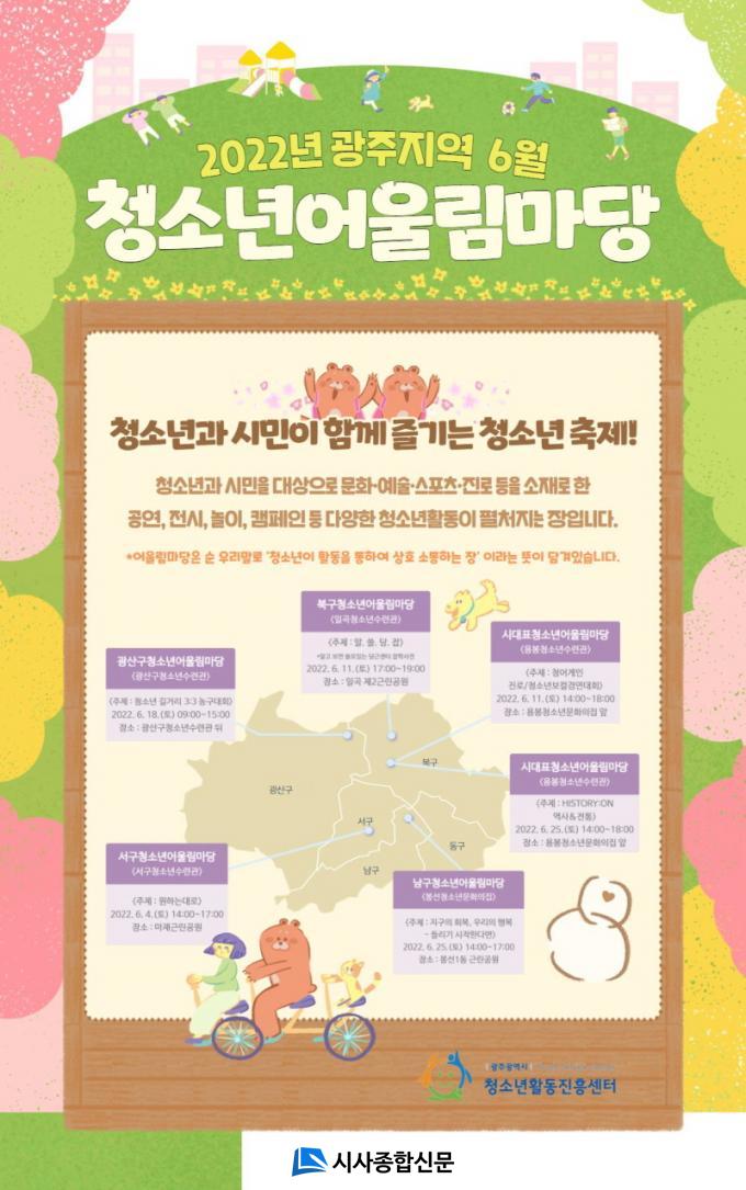 6¿ù û¼Ò³â¾î¿ï¸²¸¶´çÀº ¡ã4ÀÏ ¼±¸Ã»¼Ò³â¾î¿ï¸²¸¶´ç(¼±¸Ã»¼Ò³â¼ö·Ã°ü) ¡®¿øÇϴµ¥·Î¡¯ ¡ã11ÀÏ ºÏ±¸Ã»¼Ò³â¾î¿ï¸²¸¶´ç(Àϰîû¼Ò³â¹®ÈÀÇÁý) ¡®¾Ë.¾µ.´ç.Àâ : ¾Ë°íº¸¸é ¾µ¸ðÀÖ´Â ´ç±Ù¼¾ÅÍ ÀâÇлçÀü¡¯ ¡ã11ÀÏ ½Ã´ëǥû¼Ò³â¾î¿ï¸²¸¶´ç(¿ëºÀû¼Ò³â¹®ÈÀÇÁý) ¡®Ã»¾î°ÔÀÎ Áø·Î/º¸Äð濬´ëȸ¡¯ ¡ã18ÀÏ ±¤»ê±¸Ã»¼Ò³â¾î¿ï¸²¸¶´ç(±¤»ê±¸Ã»¼Ò³â¼ö·Ã°ü) ¡®Ã»¼Ò³â ±æ°Å¸® 3:3 ³ó±¸´ëȸ¡¯ ¡ã25ÀÏ ½Ã´ëǥû¼Ò³â¾î¿ï¸²¸¶´ç(¿ëºÀû¼Ò³â¹®ÈÀÇÁý) ¡®HISTORY:ON ¿ª»ç&ÀüÅ롯 ¡ã25ÀÏ ³²±¸Ã»¼Ò³â¾î¿ï¸²¸¶´ç(³²±¸Ã»¼Ò³â¹®ÈÀÇÁý) ¡®Áö±¸ÀÇ È¸º¹, ¿ì¸®ÀÇ Çູ – µé¸®±â ½ÃÀÛÇѴٸ顯À» ÁÖÁ¦·Î ¿î¿µµÈ´Ù.