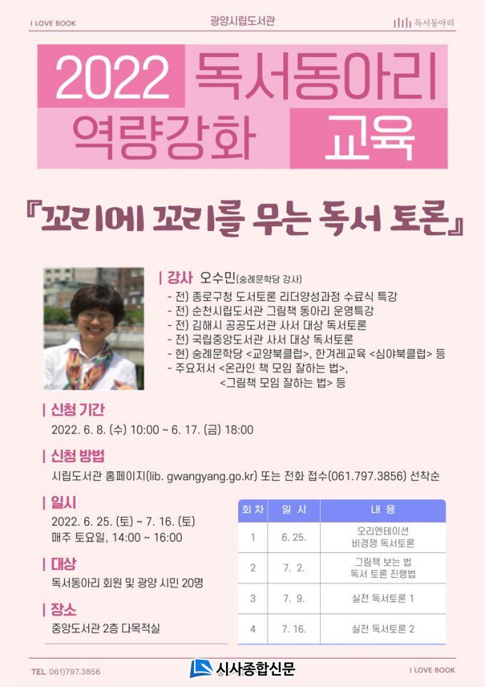 ¼ö°»ýÀº µ¶¼µ¿¾Æ¸® ´ëÇ¥¿Í ȸ¿øÀ» ¿ì¼±ÇØ ¼±Âø¼ø 20¸íÀ» ¸ðÁýÇϸç, °ü½É ÀÖ´Â ½Ã¹Îµµ Âü¿©ÇÒ ¼ö ÀÖ´Ù. ¼ö° ½ÅûÀº ±¤¾ç½Ã¸³µµ¼°ü ȨÆäÀÌÁö(lib.gwangyang.go.kr) ¶Ç´Â ÀüÈ(¢Ï061-797-3856)·Î °¡´ÉÇÏ´Ù.