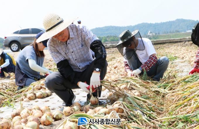 ¹Ý ³â °¡±îÀÌ Áö¼ÓµÈ °¡¹³À¸·Î ÀÎÇÑ ³óÀÛ¹° ÇÇÇØ¸¦ »ìÇÇ°í º¹±¸¡¤º¸»ó ´ëÃ¥À» ³íÀÇÇÏ´Â ÇÑÆí À± ´ç¼±ÀÎÀ» ºñ·ÔÇÑ ÀμöÀ§¿ø°ú »ç¹«Á÷¿ø µî 25¸íÀÌ Âü¿©ÇØ ¾çÆÄ ¼öÈ®¿¡ ÀϼÕÀ» º¸ÅÉ´Ù.