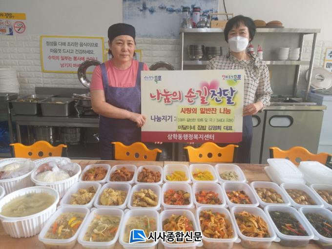 [½Ã»çÁ¾ÇսŹ® = ¿À½ÂÅà ±âÀÚ] ¸ñÆ÷½Ã »ïÇе¿ ÀÚÀ¯½ÃÀå¿¡ À§Ä¡ÇÑ ¹Ì´ÞÀÌ³× Áý¹ä(´ëÇ¥ °¿µÈñ)ÀÌ ½Ä»ç Áغñ¿¡ ¾î·Á¿òÀ» °Þ°í ÀÖ´Â Àú¼Òµæ Ãë¾à°èÃþ¿¡°Ô Á÷Á¢ ¸¸µç ¹Ø¹ÝÂùÀ» Áö¿øÇÏ¸ç ±Í°¨ÀÌ µÇ°í ÀÖ´Ù.