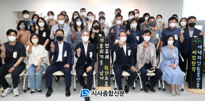 ÀüÁֽô 21ÀÏ ÀüÁֽà ¿¡³ÊÁö¼¾ÅÍ¿¡¼ ±è½Â¼ö ÀüÁÖ½ÃÀå°ú ±èÀϼö Çѱ¹¿¡³ÊÁö°ø´Ü ÀüºÏÁö¿ªº»ºÎÀå, ÀϹݽùΠµî 50¿© ¸íÀÌ Âü¼®ÇÑ °¡¿îµ¥ ¼¾ÅÍ °³°üÇà»ç¸¦ Çß´Ù.