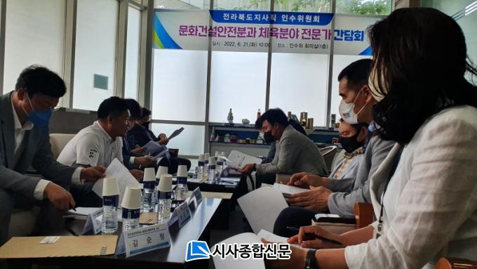 Àü¶óºÏµµÁö»çÁ÷ ÀμöÀ§¿øÈ¸ ¹®È°Ç¼³¾ÈÀüºÐ°ú(ºÐ°úÀå Çѵ¿¼þ)´Â À̳¯ ÀμöÀ§ ȸÀǽǿ¡¼ µµ³» üÀ°ºÐ¾ß Àü¹®°¡µé°ú ¸¸³ª Àǰ߼ö·Å¿¡ ³ª¼¹´Ù.