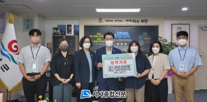 [½Ã»çÁ¾ÇսŹ® = ¿À½ÂÅà ±âÀÚ] ºÎ¾È±º »çȸº¹ÁöÇàÁ¤¿¬±¸È¸(ȸÀå ÁøÃáÀÌ)´Â Áö³ 20ÀÏ ºÎ¾È±º ±Ù³óÀÎÀçÀ°¼ºÀç´ÜÀ» ¹æ¹®ÇÏ¿© ÀåÇÐ±Ý 100¸¸¿øÀ» ±âŹÇß´Ù.