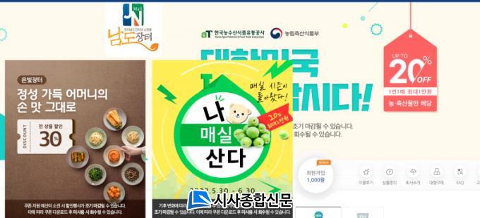 ÀÌ¿Í ÇÔ²² ³²µµÀåÅÍ ½Å±Ô°¡ÀÔ È¸¿ø ´ë»ó Àû¸³±Ý 1õ ¿ø Áö±Þ, Áö¿ª ¾î¸£½ÅÀÌ »ý»êÇÑ ±èÄ¡, ±èºÎ°¢, µÈÀå µî ³ëÀÎ ÀÏÀÚ¸® »ý»êǰ 30% Ưº°ÇÒÀÎÀü ¡®ÀººûÀåÅÍ¡¯, À¯±â³ó»ê¹°¡¤¸Å½Ç ±âȹÀü 20% ÇÒÀÎ µî ´Ùä·Î¿î Çà»ç¸¦ µ¿½Ã¿¡ ÆîÄ¡°í ÀÖ´Ù. ´Ù¸¸ Çà»ç´Â ¿¹»ê ¼ÒÁø ½Ã Á¶±â Á¾·áµÉ ¼ö ÀÖ´Ù.