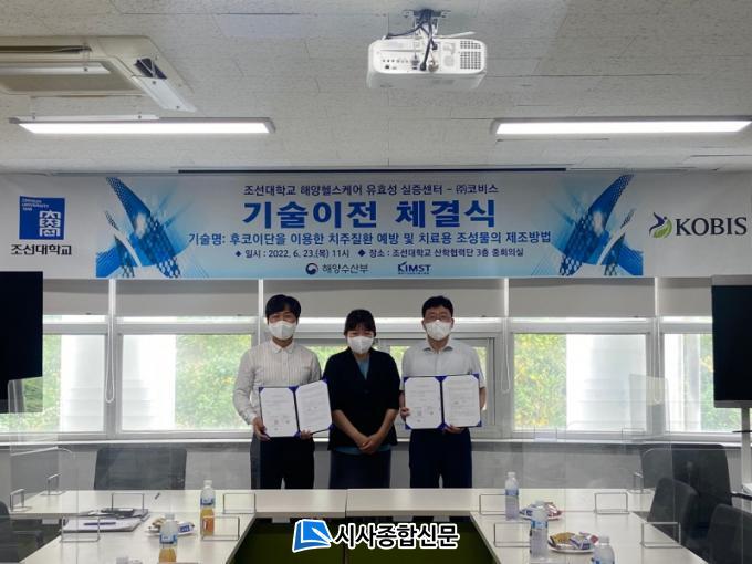 À̹ø ±â¼úÀÌÀüÀº Áö³ 4¿ù 22ÀÏ Á¶¼±´ëÇб³ »êÇÐÇù·Â´Ü 3Ãþ ÁßȸÀǽǿ¡¼ ÁøÇàµÈ ±â¼úÀÌÀü °è¾à¿¡ µû¸¥ °ÍÀ¸·Î ÇØ¾çÇコÄɾîÀ¯È¿¼º½ÇÁõ¼¾ÅÍÀÇ ¡®ÇØÁ¶·ù ±â¹Ý ¹ÙÀÌ¿À ÇコÄɾî À¯È¿¼º ¼ÒÀç ½ÇÁõÁö¿ø »ç¾÷(±èÃἺ ¼¾ÅÍÀå)¡¯ÀÇ ¿¬±¸¼º°ú¹°·Î µµÃâµÈ ƯÇã±â¼úÀÌ´Ù. ÇØ¾ç¼ö»êºÎ(Àå°ü Á¶½Âȯ), ÇØ¾ç¼ö»ê°úÇбâ¼úÁøÈï¿ø(¿øÀå ¿À¿î¿)¿Í Àü¶ó³²µµ, ¿Ïµµ±º Áö¿øÀ» ¹Þ¾Æ ¼öÇàÇß´Ù.