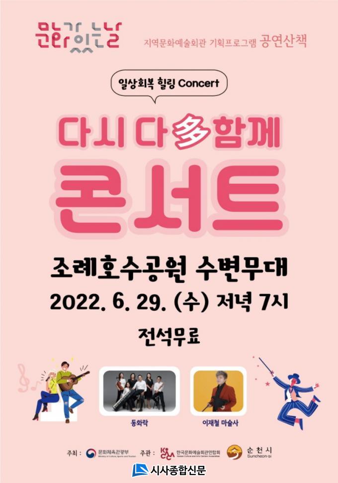 À̹ø 6¿ù °ø¿¬Àº ÄܼƮ Áß°£ Áß°£¿¡ ȯ»óÀÇ ¸¶¼ú¼î°¡ ¿¬ÃâµÇ¾î º¼°Å¸®¸¦ Á¦°øÇÏ¿© ¿ôÀ½À» ÅëÇÑ ½ºÆ®·¹½º ÇØ¼Ò·Î Èú¸µÀÇ ÄܼƮ°¡ µÉ ¿¹Á¤ÀÌ´Ù. °ø¿¬Àº ÇöÀå¿¡¼ ¹«·á·Î °ü¶÷ÇÒ ¼ö ÀÖÀ¸¸ç, À¯Æ©ºê ¡®¼øÃµ½Ã¹®È¿¹¼úȸ°ü LIVE¡¯Ã¤³ÎÀ» ÅëÇØ ½Ç½Ã°£ ¿Â¶óÀÎÀ¸·Î ½ÃûÇÒ ¼ö ÀÖ´Ù.