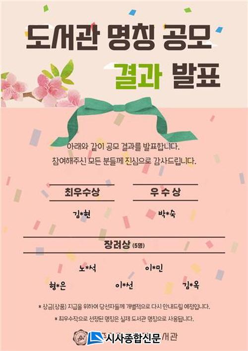 À̹ø ¸íĪ °ø¸ð¿¡´Â ÃÑ 205°ÇÀÌ Á¢¼öµÆ°í, µµ¼°ü¿î¿µÀ§¿ø 5¸íÀÌ 2ȸÀÇ ½É»ç¸¦ ÁøÇàÇÏ¿© ÃÖ¿ì¼öÀÛ 1°Ç, ¿ì¼öÀÛ 1°Ç, Àå·Á 5°ÇÀ» ¼±Á¤ÇßÀ¸¸ç, µ¶Ã¢¼º, Á¤Ã¼¼º, ´ëÁß¼º, Àü´Þ¼ºÀÇ 4°¡Áö ±âÁØÀ¸·Î ½É»çÇÑ °á°ú ÃÖ¿ì¼ö»ó¿¡´Â ¡®ÁöÇýÁ¤¿ø¡¯, ¿ì¼ö»ó¿¡´Â ¡®¼Û°±â³äµµ¼°ü¡¯, Àå·Á»ó¿¡´Â ¡®¼Û° ¸¶À½ µµ¼°ü¡¯, ¡®¸¶À½¸ð¾Æµµ¼°ü¡¯, ¡®ÇýÀ³³ª·¡¡¯, ¡®¼Û°Á¤º¸°ü¡¯, ¡®ÁöÇý¸¶·ç¡¯°¡ ¼±Á¤µÆ´Ù.