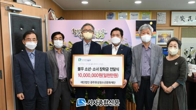 À̹ø¿¡ ±âºÎÇÑ ÀåÇÐ±Ý 1,000¸¸¿øÀº °ü³» û¼Ò³â 10¸í¿¡°Ô 10°³¿ù°£ ¸Å´Þ 10¸¸¿ø¾¿ ÀåÇбÝÀ¸·Î Áö¿øµÇ¸ç, ³²±¸´Â µ¿ ÇàÁ¤º¹Áö¼¾ÅÍ ÃßõÀ» ÅëÇØ ÀåÇбÝÀ» ¹ÞÀ» ÇлýÀ» ¼±Á¤Çß´Ù.