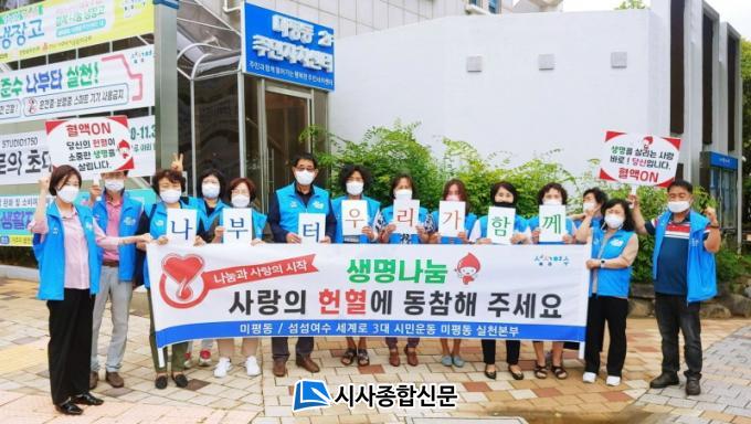 | ¿©¼ö½Ã ¹ÌÆòµ¿ ÀÚ»ý´Üü, ¡®³ªºÎÅÍ, ¿ì¸®°¡ ÇÔ²²¡¯ ÇåÇ÷ µ¿Âü ÆÛÆ÷¸Õ½º Àü°³ Ç÷¾×¼ö±Þ Àû½ÅÈ£¿¡ ÀÚ»ý´Üü ȸ¿ø µî 20¿©¸í ÇåÇ÷ Âü¿©¡¦È«º¸ Ä·ÆäÀεµ ¹ú¿© |