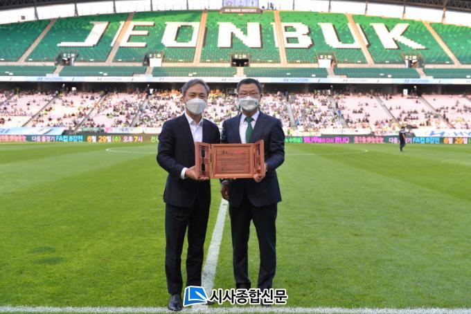 ±è½Â¼ö ÀüÁÖ½ÃÀåÀº ¡°ÀüÁÖ¸¦ ¿¬°íÁö·Î ÇÏ´Â ÇÁ·ÎÃ౸ ÀüºÏÇö´ë¸ðÅͽºFC¿Í ÇÁ·Î³ó±¸ ÀüÁÖKCCÀÌÁö½º´Â ¿À·§µ¿¾È ÀüÁֽùε鿡°Ô ¼ÒÁßÇÑ Ãß¾ïÀ» ¼±¹°ÇØÁØ ±ÍÁßÇÑ µ¿¹ÝÀÚ¡±¶ó¸ç ¡°¾ÕÀ¸·Îµµ ÇÑ »ç¶÷ÀÇ ÆÒÀ¸·Î¼ ±¸´ÜÀÇ ¹ßÀü°ú ½Â¸®¸¦ ±â¿øÇϰڴ١±°í °Á¶Çß´Ù.